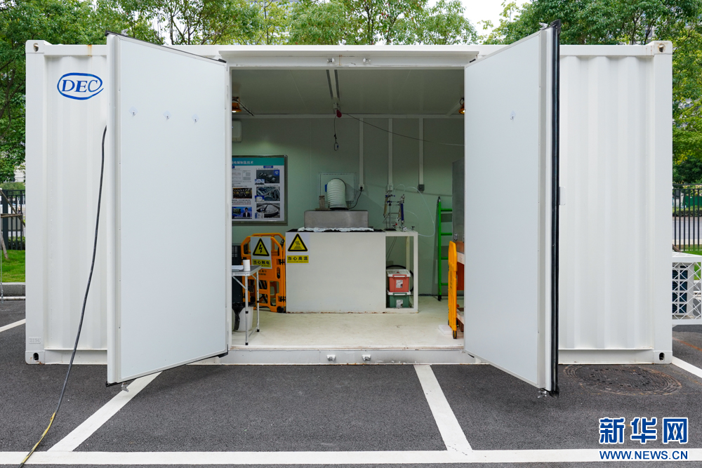 集装箱里的设备,是在内蒙古长庆油田成功完成试验的气田采出水无纯化电解制氢系统。新华网 肖和勇 摄