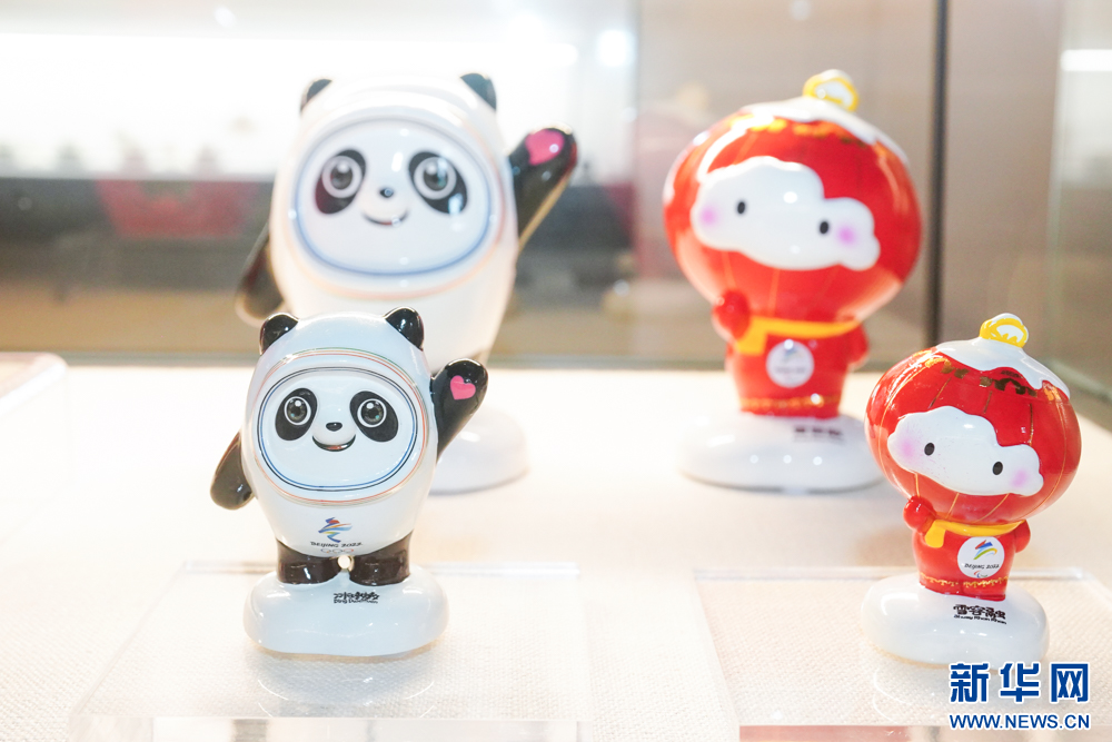 这是2022年北京冬奥会吉祥物陶瓷冰墩墩和冬残奥会吉祥物陶瓷雪容融。新华网 肖和勇 摄