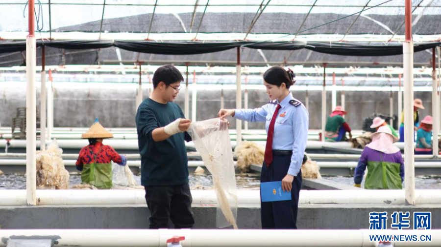 税务工作人员来到惠安鑫海水产科技有限公司培育基地,为企业提供“一对一”税收政策辅导。 新华网发(曾婧 摄)