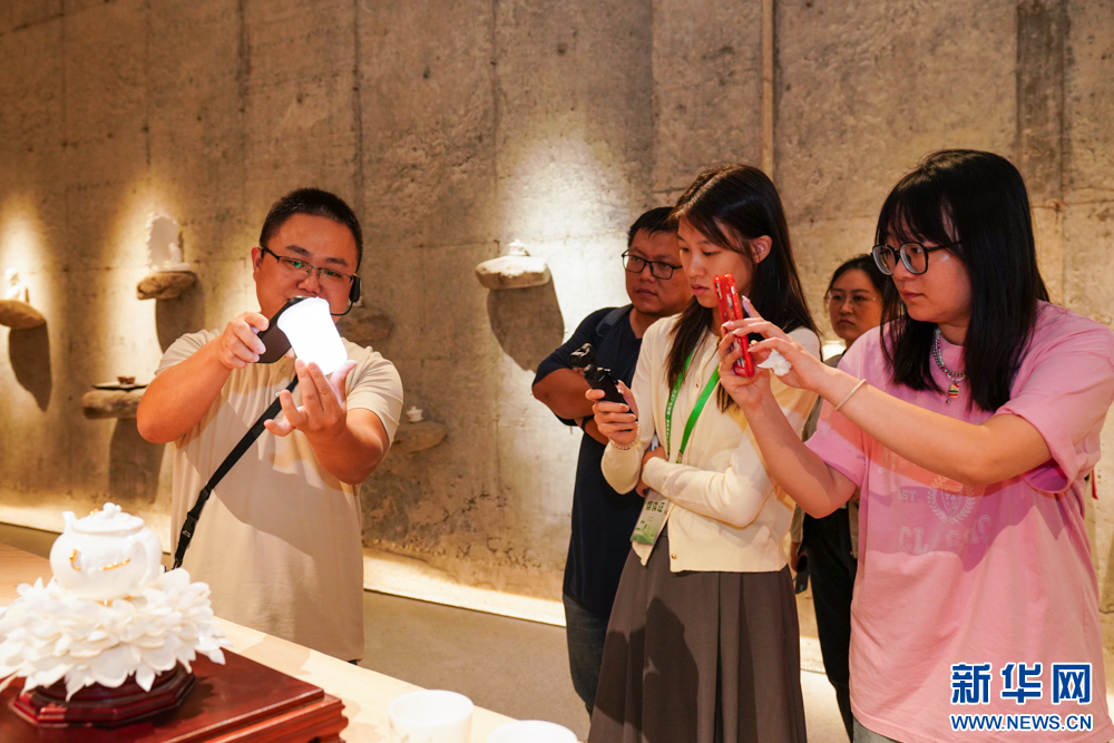 新华网福州11月15日电(刘默涵 肖和勇)远看如纱、近看是瓷,德化白瓷的巧夺天工到底有多绝妙?11月14日,“万千气象看福建·唱响海上牧歌”网络主题活动走进泉州德化龙鹏艺术馆,近距离感受海丝瓷文化的深厚底蕴和独特魅力。