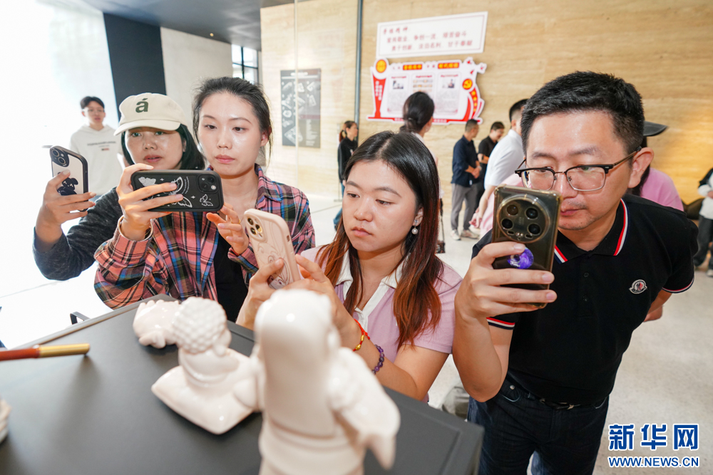 11月14日,参观者用手机拍摄悟空主题陶瓷作品。新华网 肖和勇 摄