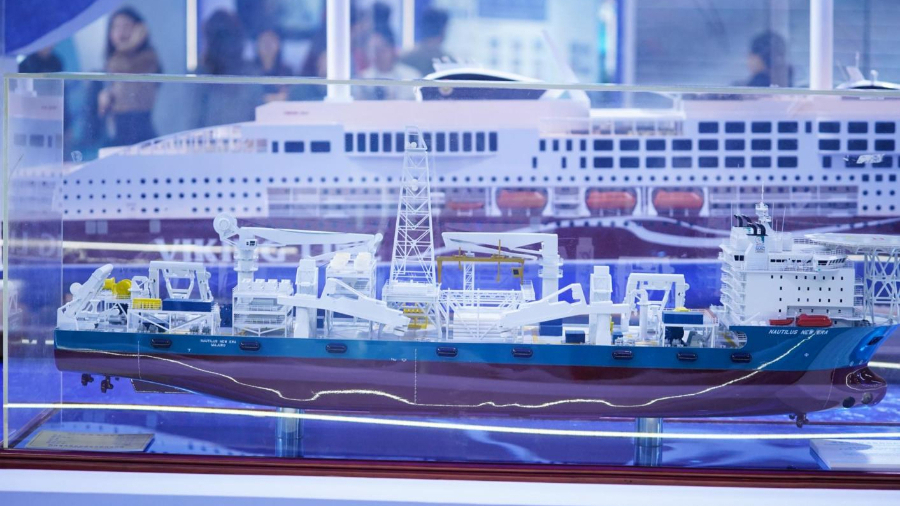 这是11月15日在2024第二届中国海洋装备博览会上拍摄的船舶大坝清洗机器人。新华社记者 周义 摄