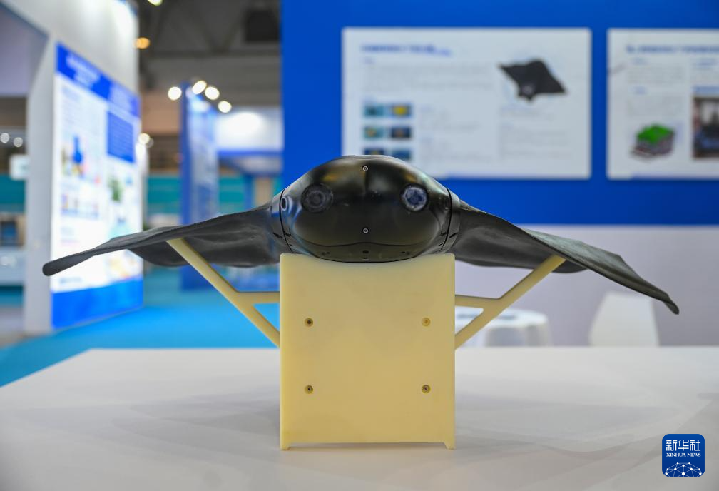 这是11月15日在2024第二届中国海洋装备博览会上拍摄的仿蝠鲼智能水下航行器。新华社记者 周义 摄
