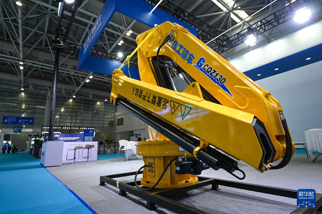 这是11月15日在2024第二届中国海洋装备博览会上拍摄的船用起重机。新华社记者 周义 摄