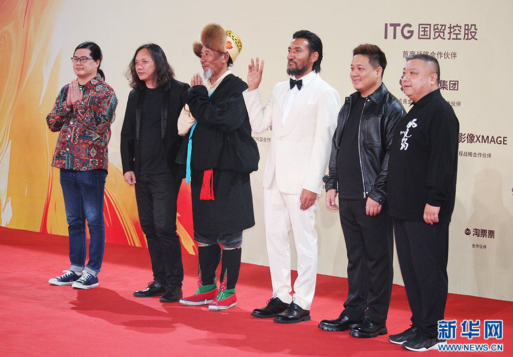 获4项提名的《雪豹》剧组在金鸡百花电影节闭幕式红毯上合影。新华网 陈醉 摄