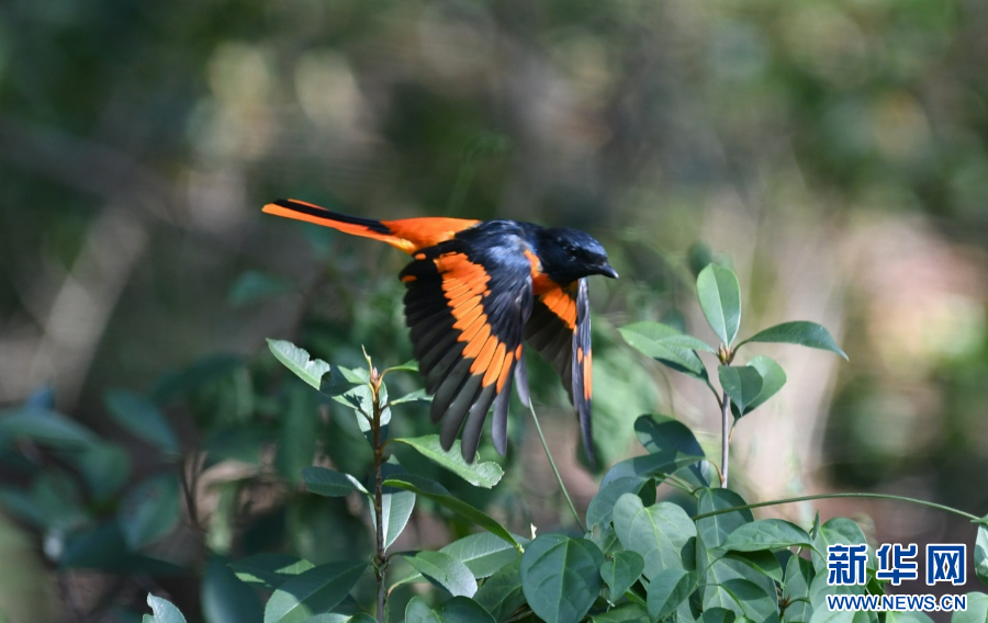 在东张镇观测到的赤红山椒鸟(资料图)。 新华网发(黄昊 摄)