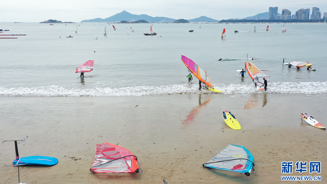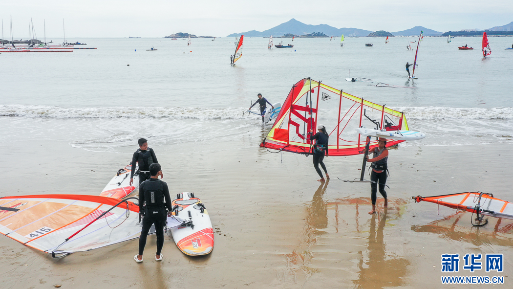 位于马銮湾的东山县翔业帆船基地,运动员正加紧训练备战。海面之上,帆板随风冲浪,竞相追逐,渐入佳境。