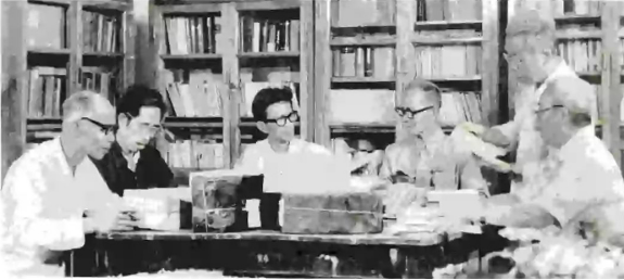 1982年,黎明学园工作人员在整理巴金所赠的图书