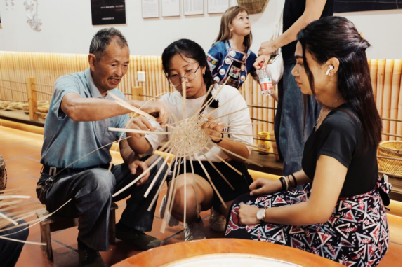 留学生体验非遗技艺——竹编