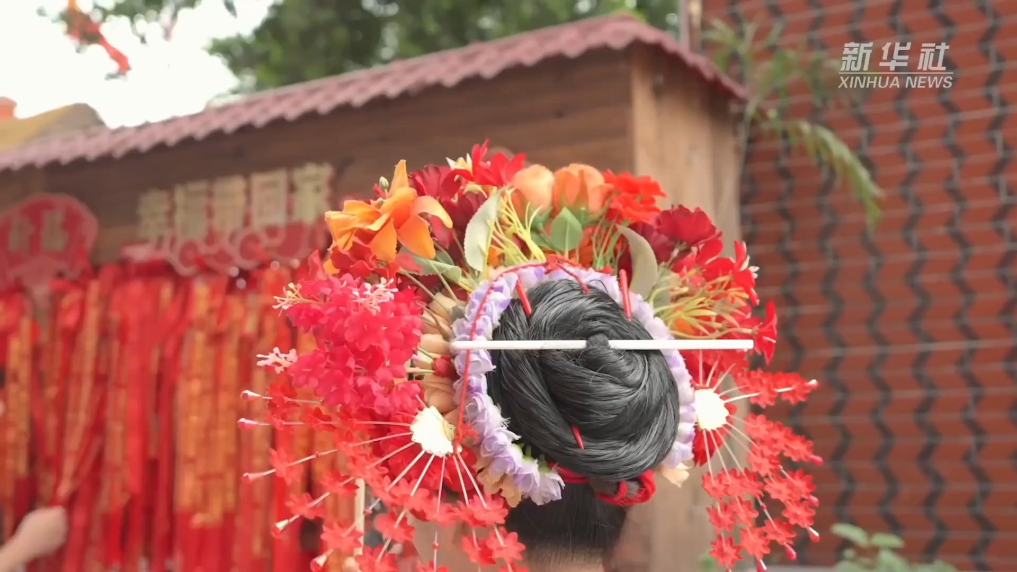 在蟳埔村,这样簪发戴花被称为“簪花围”,是闽南地区渔家女的传统穿戴习俗。2008年,以“簪花围”为代表的蟳埔女习俗被列入第二批国家级非遗名录。