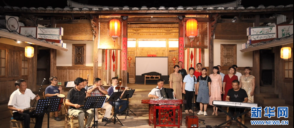 尤溪县半山—汶潭农民乐队在新知青艺术公社排练。新华网发(福建支部生活杂志社供图)