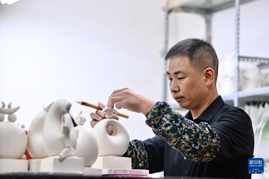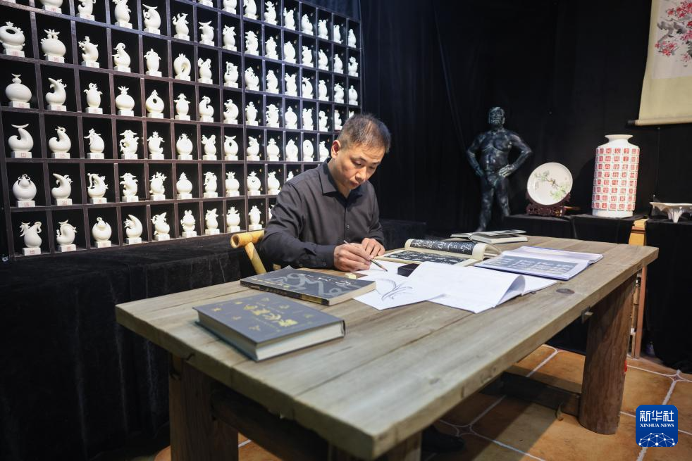 12月6日,彭成雄在位于福建省泉州市德化县的工作室内进行创作。新华社记者 姜克红 摄