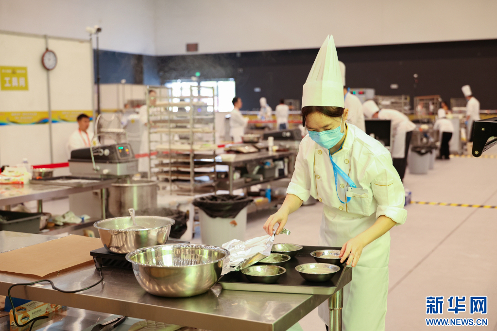 图为选手正在进行烘焙项目竞技。新华网发(刘翼 摄)