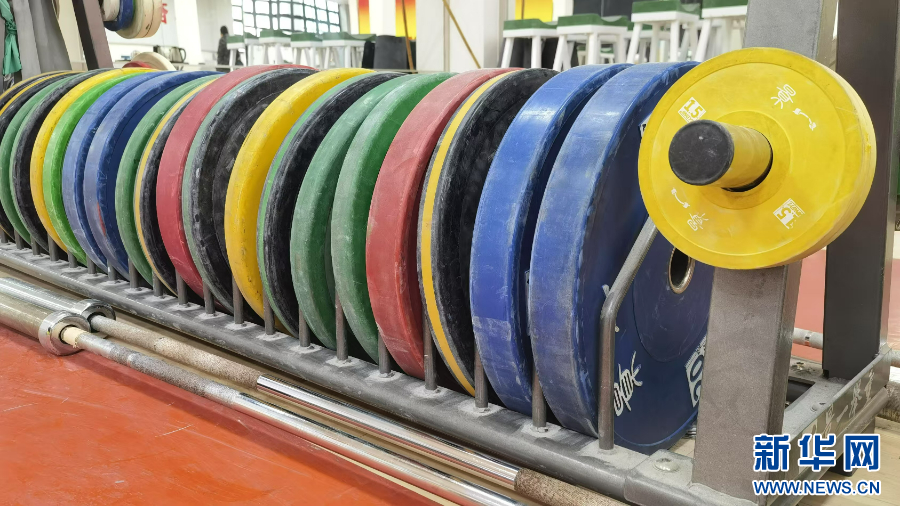 训练馆里的举重器材。新华网 刘丰 摄