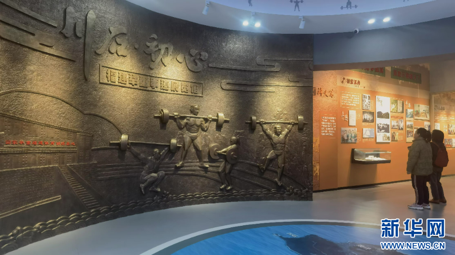 基地里的福建举重事迹展览馆讲述了福建省举重队从一支名不见经传的队伍,到迅速成长、强势崛起的奋斗历程。新华网 刘丰 摄