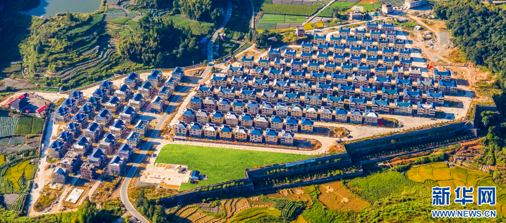 新塘村142栋风格统一的别墅式新居井然有序。新华网发(黄琳 摄)