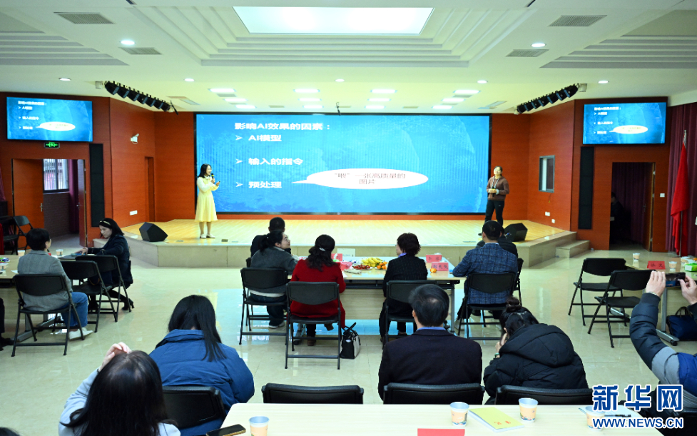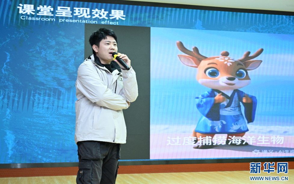 美术老师孙德人讲述AI在美术课程上的应用。新华网发(叶诚 摄)
