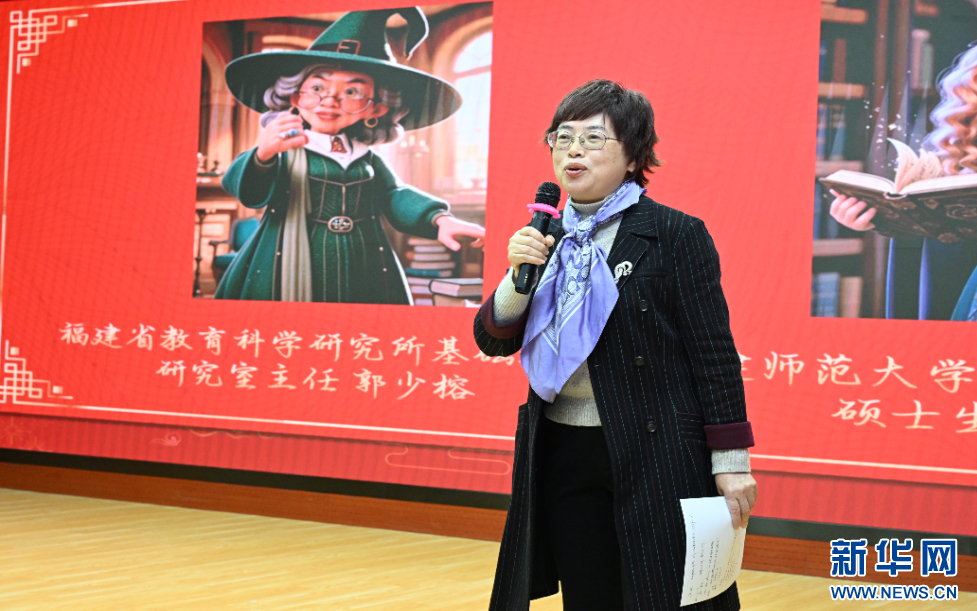 福建省教育科学研究所基础教育研究室主任郭少榕作现场点评。新华网发(叶诚 摄)