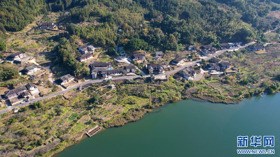 依山傍水的大喜村,人居环境已焕然一新(无人机照片)。 新华网 蒋巧玲 摄