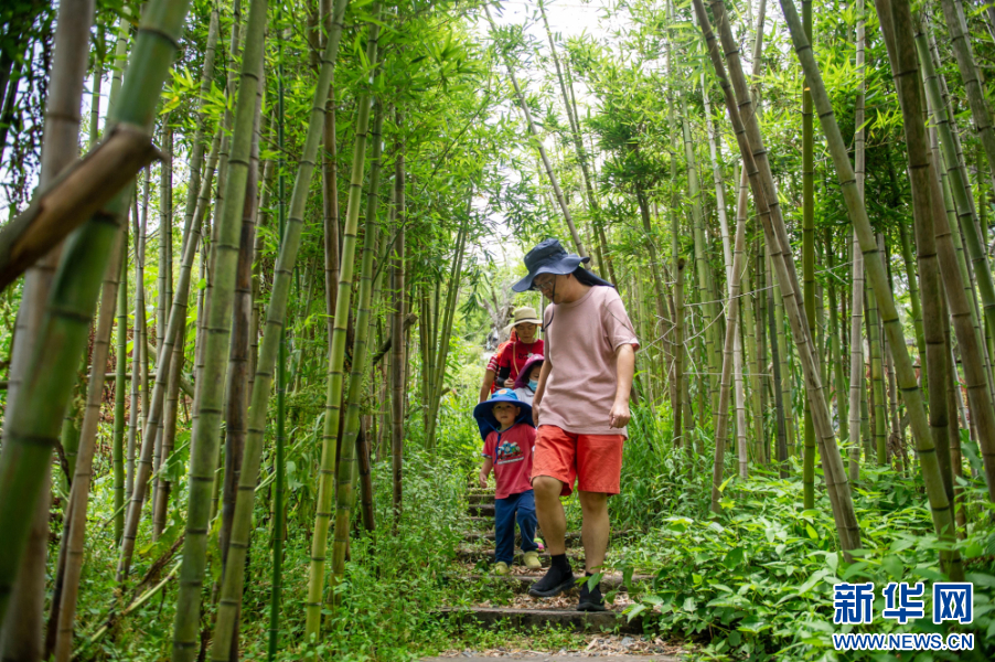 游客在九峰村的生态竹林里穿行。 新华网发(受访者供图)