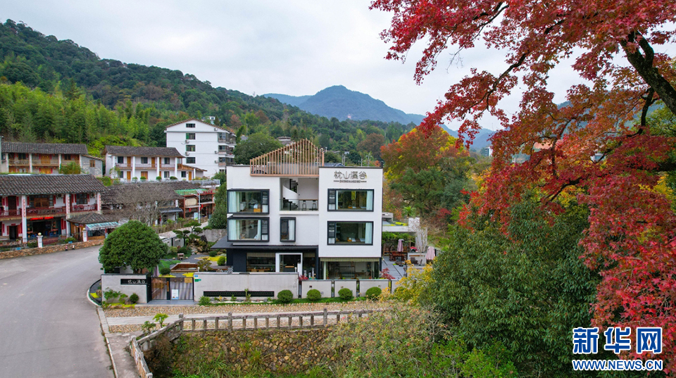 经过生态治理,寿山乡九峰村发生了村容巨变,村居民宿与美丽生态相映成趣(无人机照片)。 新华网 蒋巧玲 摄