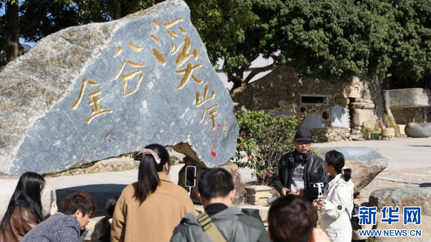 主播团跟随艺术家陈文令一起游览金谷溪岸艺术公园。新华网发(主办方 供图)