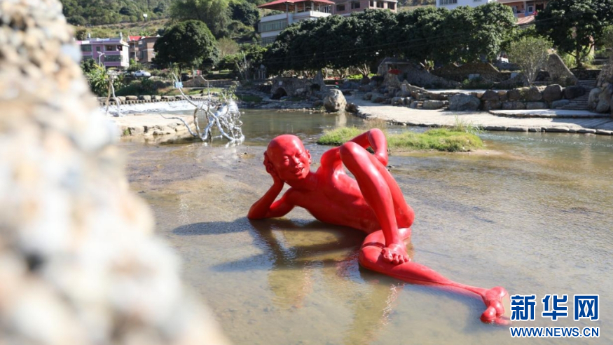 金谷溪岸艺术公园里的“小红人”雕塑。新华网发(主办方 供图)