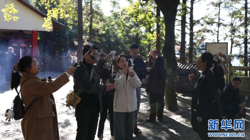 主播直播介绍清水岩寺。新华网发(主办方 供图)