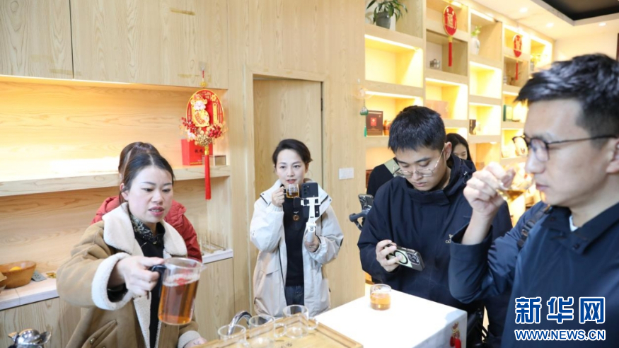 主播们品鉴陈茶。新华网发(主办方 供图)