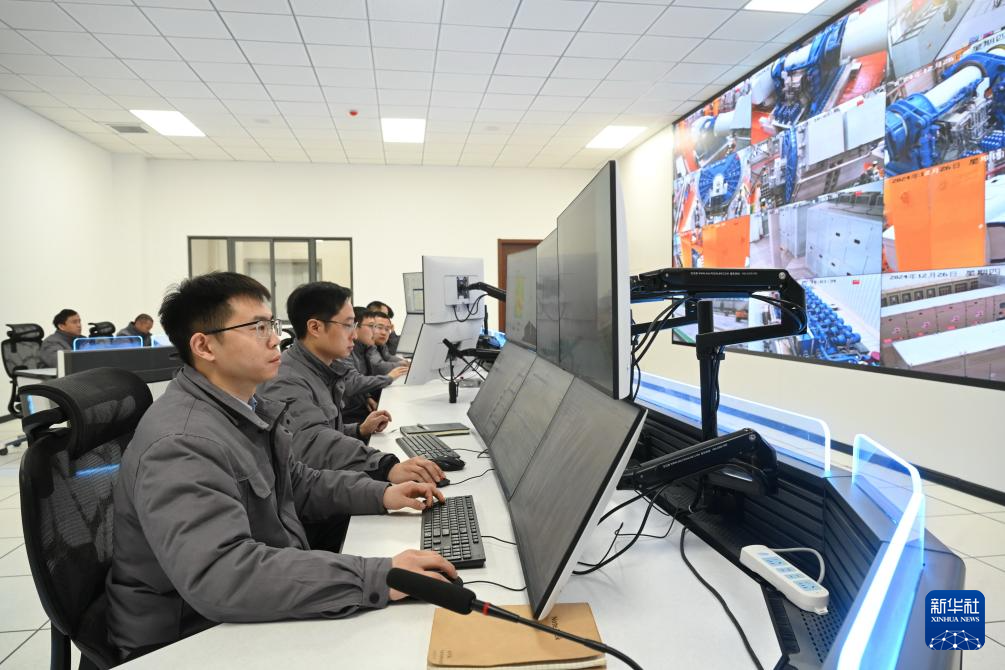 12月26日,工作人员在海上风电研究与试验检测基地传动链平台控制中心监测平台运行情况。新华社记者林善传摄