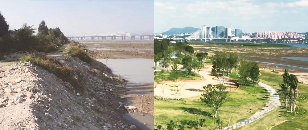 泉州湾晋江入海口海岸带修复前后对比。