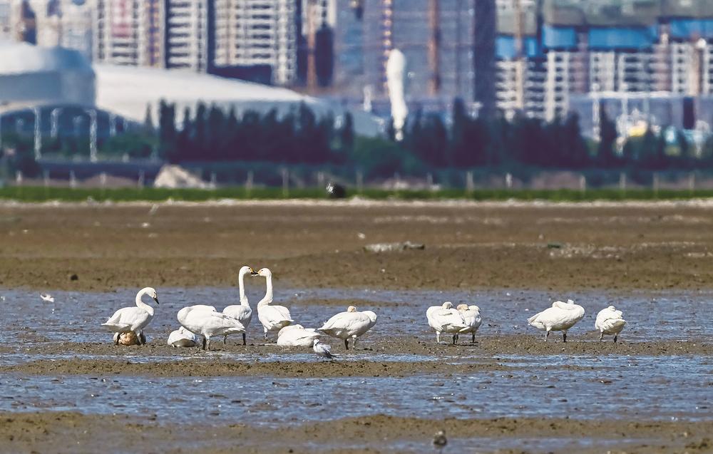 近日,泉州观鸟爱好者在泉州湾晋江入海口湿地拍到天鹅、黑脸琵鹭等。陈庆煌 摄