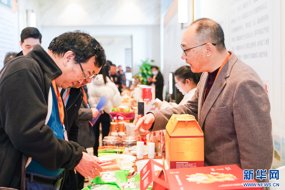 1月3日,嘉宾在现场了解浦城大米系列产品供销情况。新华网 肖和勇 摄