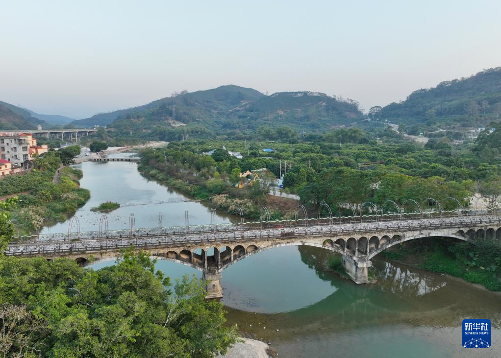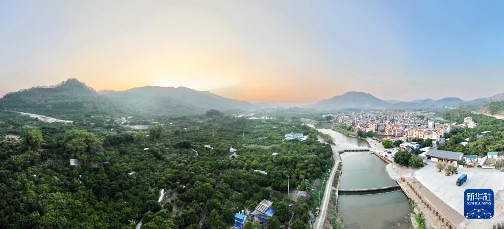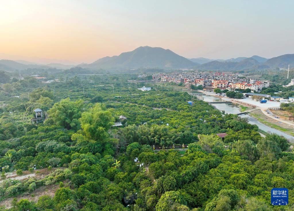云霄县下河乡下河村的杨桃林和周围的景观(1月3日摄,无人机全景照片)。新华社记者 林善传 摄