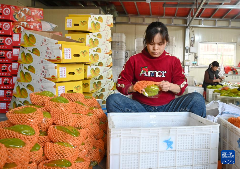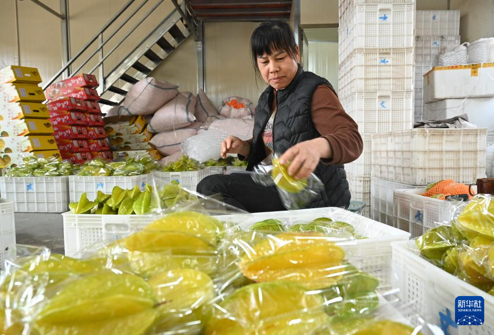 1月3日,村民吴素华在包装杨桃。新华社记者 林善传 摄