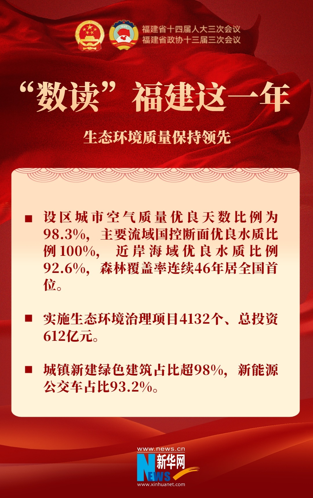 新华网福州1月13日电(刘丰 袁羽)提交福建省十四届人大三次会议审议的政府工作报告指出,2024年,福建生态环境质量保持领先,绿色低碳发展纵深推进,生态治理体系更加健全,生态优先绿色发展之路越走越宽。