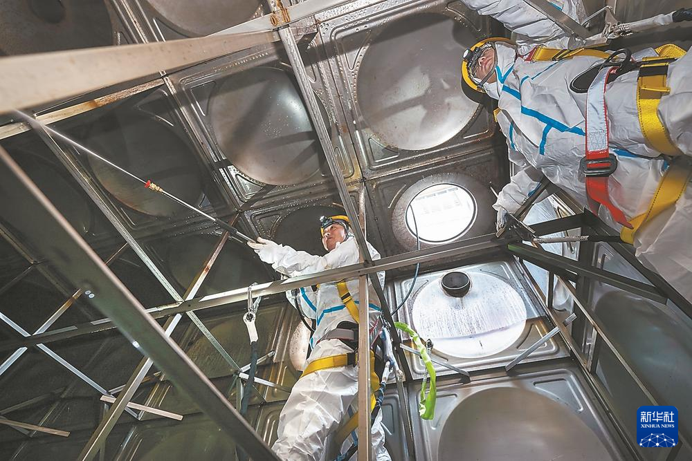 护水工在清洗水箱。新华社发(施辰静 摄)