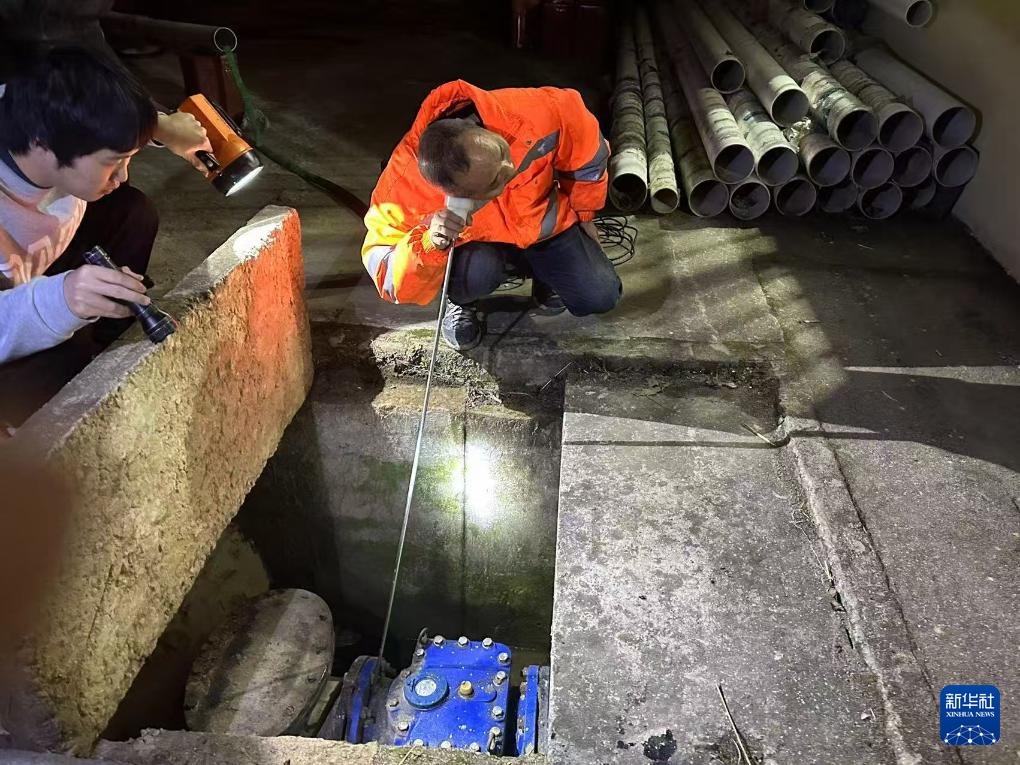 1月14日凌晨,护水工出发寻声。一根听音杆,一头覆在耳上,一头插在泥土里或者贴在水泥地上,草丛、沟坎、井下……每走一两步就要停下来听一听。接近疑似漏水点附近要一边慢慢走一边仔细听,直到确定漏水点,整个过程需要弯腰行走几公里。