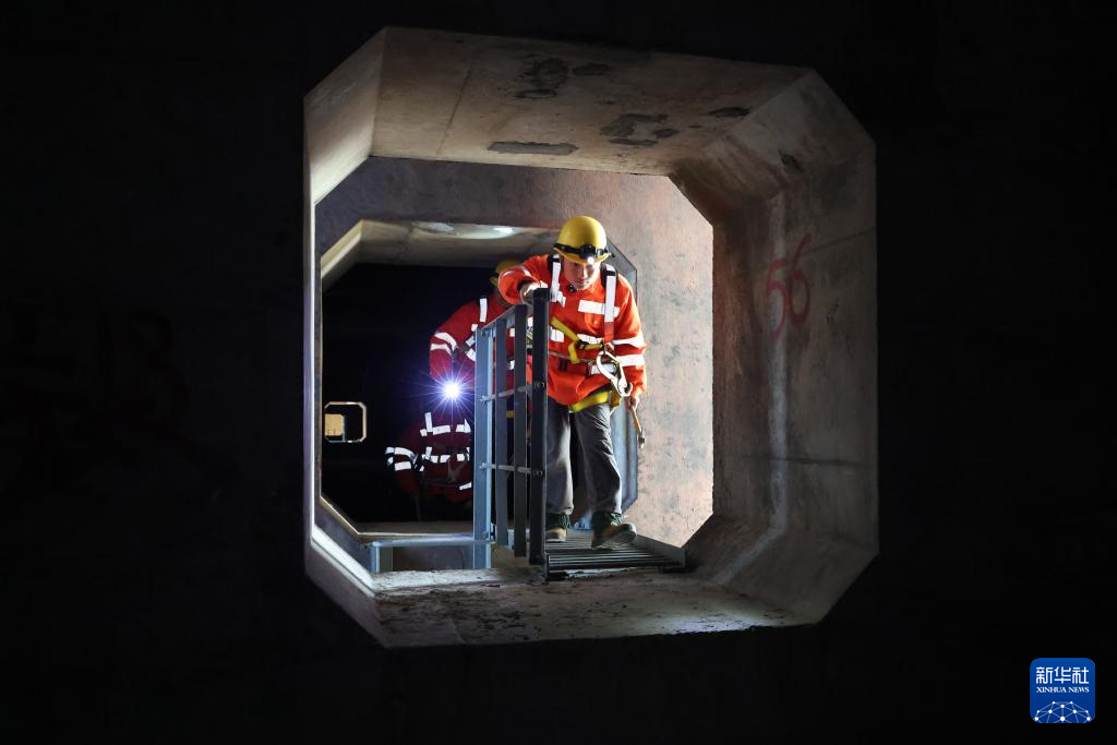 1月15日,福州工务段工人进入平潭海峡公铁大桥箱梁检修。新华社记者 周义 摄