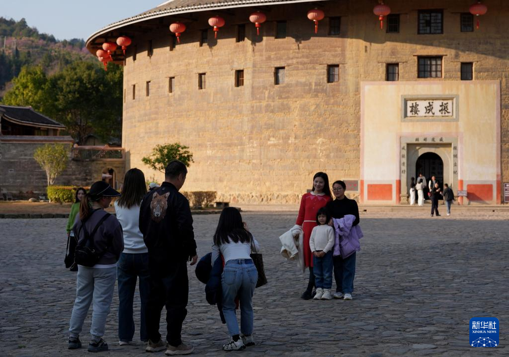 随着春节的临近,福建省龙岩市永定区的土楼迎来众多游客。“福建土楼”不仅承载着客家人团圆的记忆,还吸引着无数外地游客前来探访。“福建土楼”于2008年被列入《世界遗产名录》。