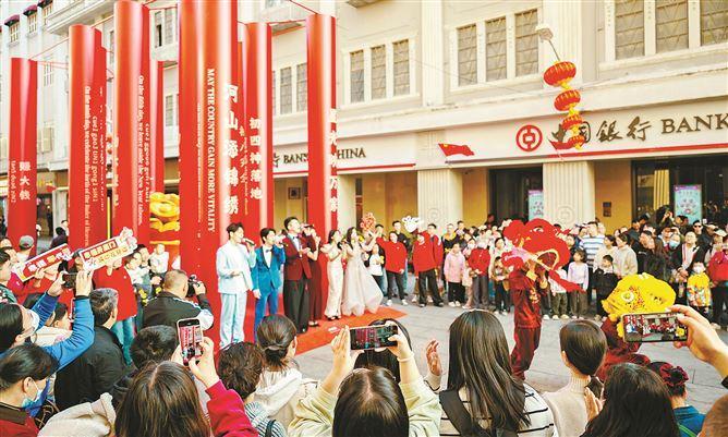 昨日活动现场创意打造行进式“幸福年代秀”,一批优秀演员走上中山路街头,演绎多首经典年代主题歌曲,用歌舞带着观众一路听歌一路赏景,带领大家沉浸式感受厦门独有的文化魅力和新春节日氛围。