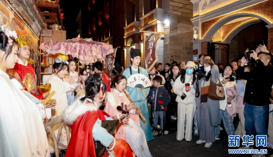 当晚,“穿越宋元奇妙游”宋风古韵沉浸式街区开街,为市民游客进一步体验泉州古城、感受世遗精神提供了丰富载体。 新华网发(福建省文化和旅游厅供图)