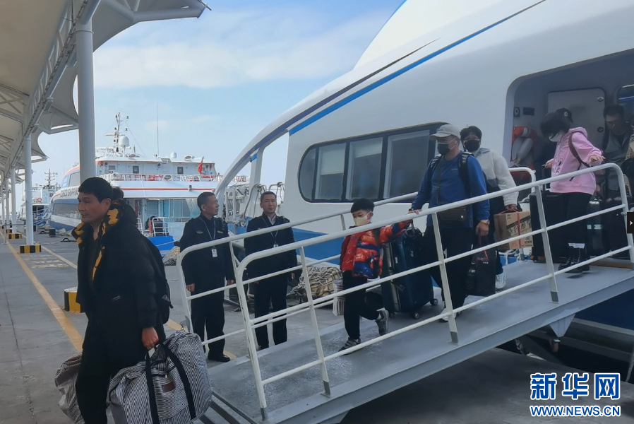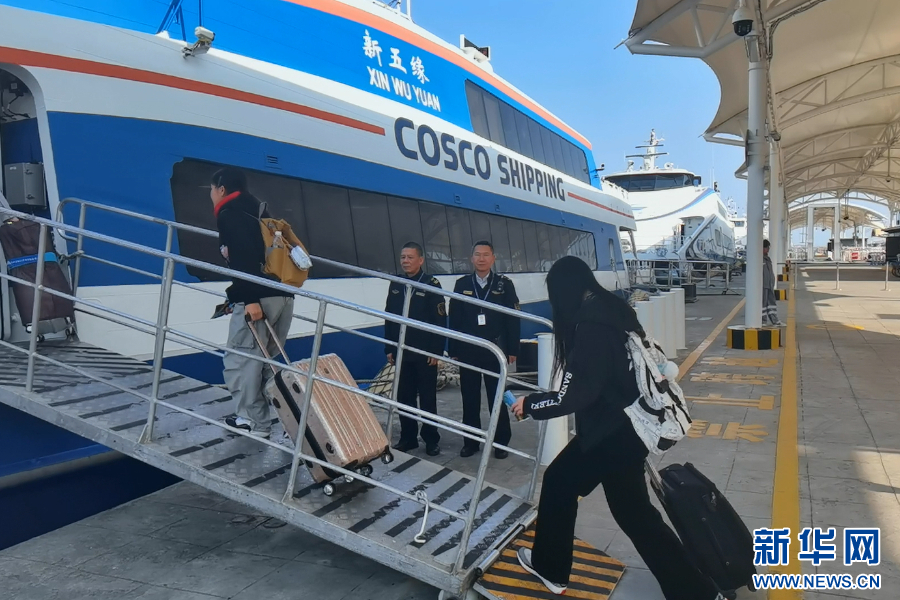 厦门海事局执法人员保障厦金“小三通”旅客上下船。新华网发(叶晓璐 摄)