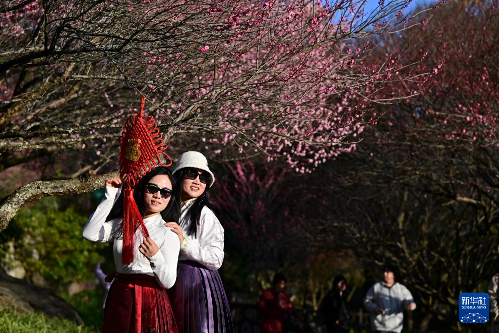 1月29日,游人在福州鼓山梅里景区赏梅拍照。新华社记者 姜克红 摄