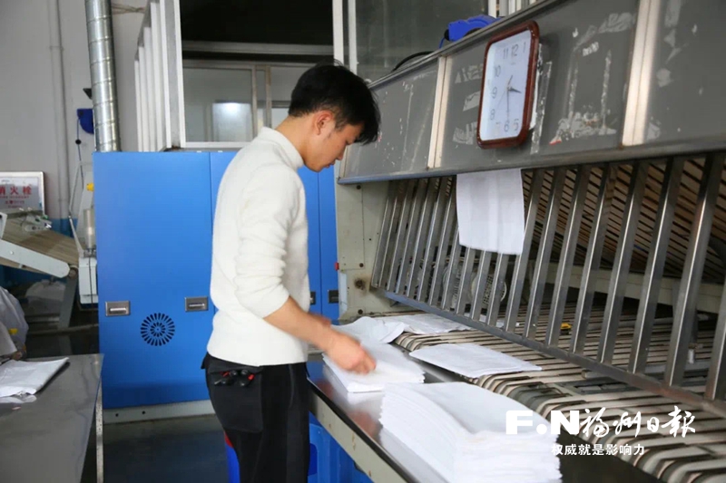 福州旅游市场越来越火热,随之增长的酒店布草洗涤需求,为位于长乐的福建美臣智能洗涤有限公司带来不少业务。“春节前,我们接到福州市区、长乐、平潭等多个地方酒店的布草订单。为确保工作效率,每天都有100多名工人在岗。我们严格按照生产要求组织工人进行分拣、洗涤、烫平、包装等工序,每天洗涤量达1万多套。”美臣公司总经理许香俤说,到正月十五的布草洗涤订单量已爆满。