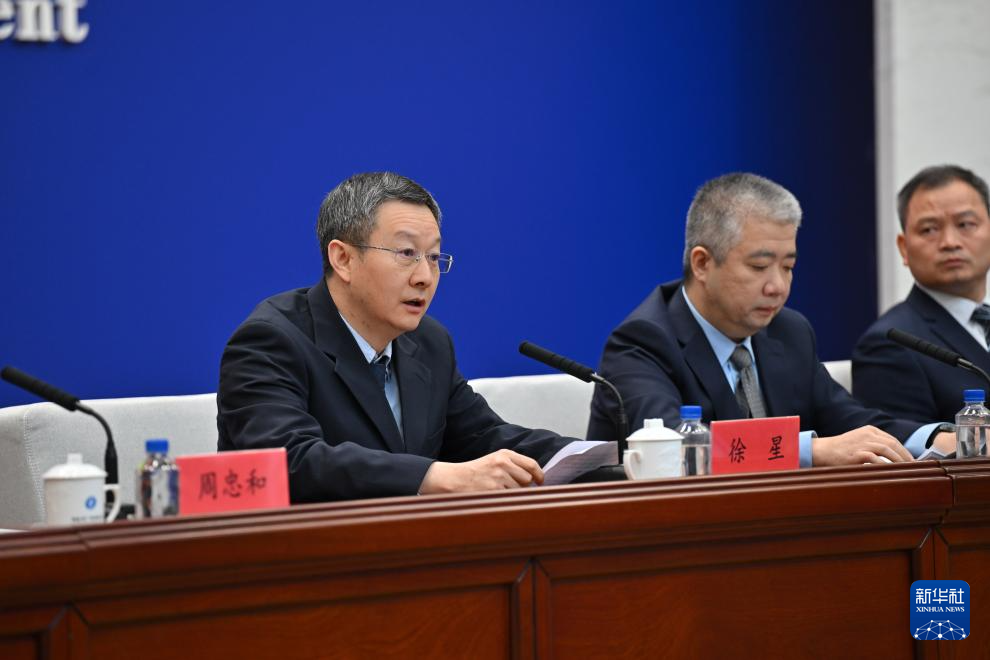 2月13日,中国科学院院士周忠和(中)在发布会上回答记者提问。新华社记者 姜克红 摄