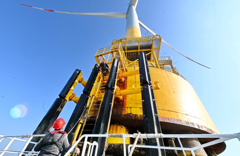 “作为海上风电运维人员,爬梯是一项基本功,遇到低潮时要爬20多米才能到达基座。”福建中闽海上风电有限公司“90后”运维人员黄志明说:“轮毂中心高度距离塔基下面是100余米,我也有点恐高,到了机舱上面的时候,感觉这个庞然大物它真的很高。”