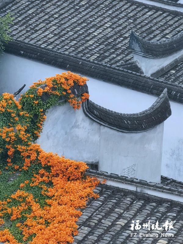 昨日上午,记者在三坊七巷塔巷发现,一丛丛炮仗花墙头盛放,好似橙红色的瀑布倾泻而下,美不胜收。墙下,不少身着汉服的游客正用手机拍摄下这烂漫春色。