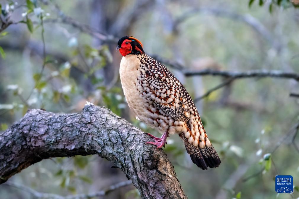3月7日,福建省建瓯市小桥镇,一只黄腹角雉在树上停歇。新华社记者 梅永存 摄