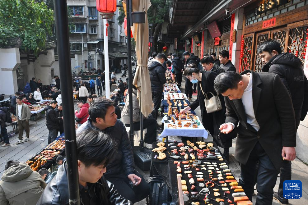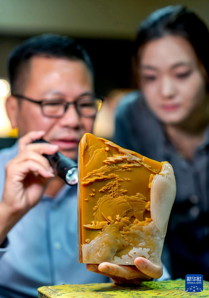 3月8日,寿山石爱好者在福州藏天园寿山石交易市场选购寿山石。新华社记者 姜克红 摄